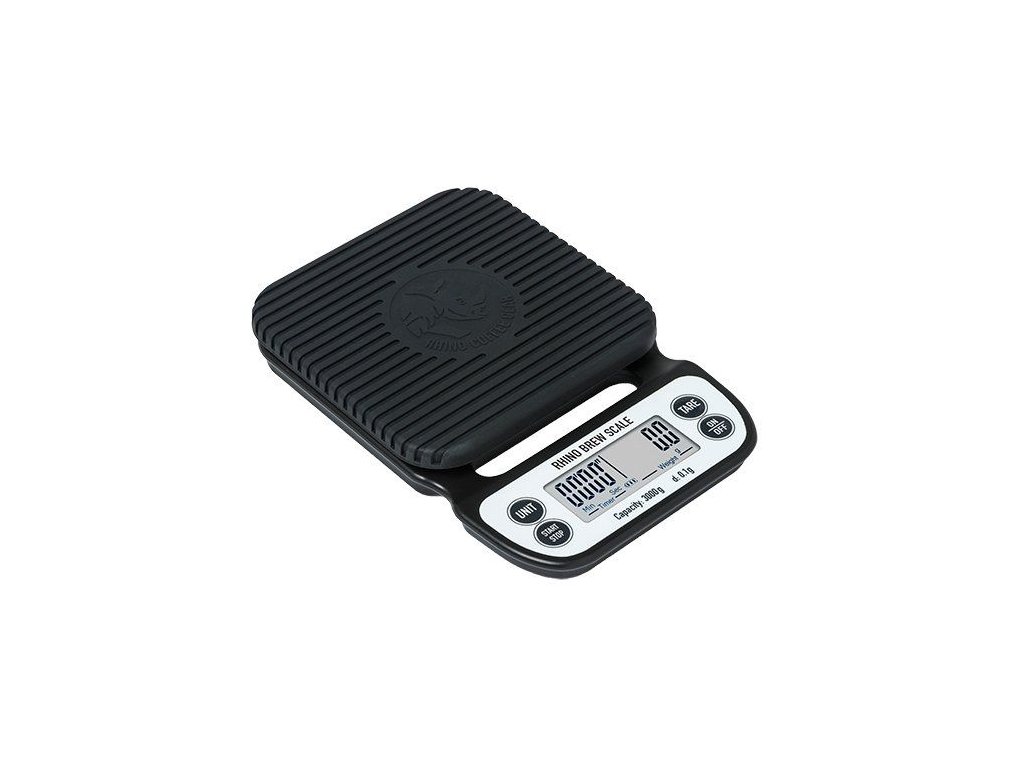 Profesionální digitální baristická váha Rhino Coffee Gear - Brewing je ideální váha pro použití v domácnosti či kavárně. Váha váží s přesností na 0,1 g. Plocha této váhy je z nerezové oceli a je dostatečně velká i pro portafiltery.Velikost plochy 12,6 x 12,6 cm, vestavěné stopky, volitelné automatické vypnutí, bíle podsvícený displej, jednotky g / oz / lb-oz / ml, napájení 2 ks AAA bateriemi (součástí balení).